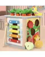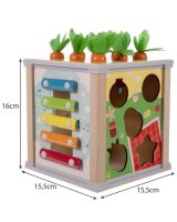 Komplektā: kubs, 5 šķirotāja figūriņas, ksilofona nūja, putns, 4 tārpi, 9 burkāni.