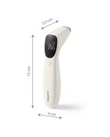 Babyono 1575 bezkontakta termometrs ir paredzēts ātrai temperatūras mērīšanai no pieres vai ausī. Tikai ar vienu pogas klikšķi jūs iegūsiet precīzu rezultātu pēc sekundes. Tas ir daudz ērtāk nekā tradicionālie termometri. Klusais vibrācijas signāls un LED gaisma ļauj izmērīt temperatūru pat tad, kad mazulis guļ. Stilīgs aizmugurgaismotais LED ekrāns ļauj viegli nolasīt rezultātus pat naktī.