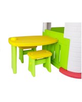 Dārza rotaļu mini- laukums ar mājiņu ir īsta paradīze bērniem. Pateicoties tam, katram mazulim patiks pavadīt laiku dabā, noliekot malā elektroniskos gadžetus. Māja, kas savienota ar galdu, ļaus jūsu bērnam izklaidēties kopā ar brāļiem un māsām, vecākiem vai draugiem.