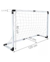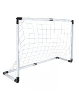 Komplektā: vārti, tīkls, bumba, pumpis, mietiņi.