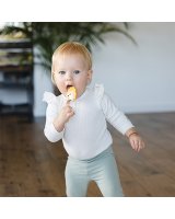 GRAUŽAMAIS: taustei patīkams mīksts silikona zobgrauznis maigi masē mazuļa smaganas un palīdz mazināt zobu nākšanas sāpes.