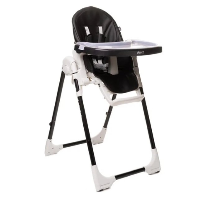 Funkcionāls augstais krēsls modernā stilā apvienojumā ar klasisku eleganci. Mīkstā eko-ādas apdare nodrošina komfortu un vieglu tīrīšanu, divas praktiskas paplātes ar vietu krūzītei vai pudelei atvieglo dzērienu pasniegšanu mazulim. Krēslam ir piecu punktu drošības josta ar plecu polsteriem un papildu elements, kas neļauj izslīdēt no krēsla. Decco augstais krēsls ir ieteicams bērniem ar maksimālo ķermeņa svaru līdz 15 kg un vecumā no 6 līdz 36 mēnešiem. Galvenās iezīmes: - mīksta eko-ādas apdare - piecu punktu drošības jostas - pretslīdes elements - divpakāpju dubultās paplātes regulēšana - piecu pakāpju atzveltnes regulēšana līdz guļus pozīcijai - trīs pakāpju kāju balsta regulēšana - septiņu pakāpju augstuma regulēšana - kompakts salocīts izmērs - pieļaujamā slodze 15 kg. Izmēri (platums/augstums/dziļums, cm): - salocīts: 53/116/31, - atvērtā veidā: 53/109/67, - sēdeklis: 29/43/21 Svars: 8 kg