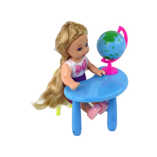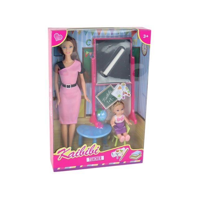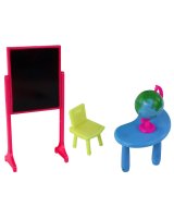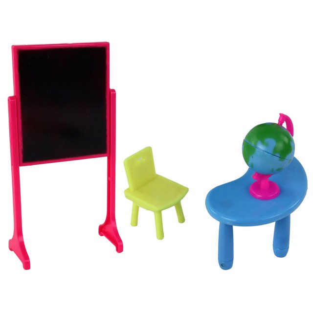 Komplektā ietilpst zīmēšanas dēlis, ko var izmantot mācībām un rotaļu laikā. Komplektā ietilpst arī galds un krēsls, uz kura var apsēsties skolotājs un skolniece. Globuss ir vēl viens komplekta elements, kas ļauj studēt ģeogrāfiju un atklāt pasauli. Šis rotaļlietu komplekts ļauj spēlēt iztēli, kurā jūsu bērns var izspēlēt dažādus ar mācīšanos un skolu saistītus scenārijus. Skolotāju un skolnieces lelles un aksesuāri ļauj izveidot reālistiskas mācību situācijas un attīstīt bērnu iztēli.
