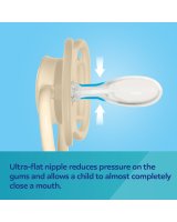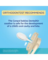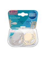 Canpol babys DentalAir - silikona simetrisks māneklis bērniem vecumā no 0 līdz 6 mēnešiem.Dental Air māneklis atslābinās un nomierinās Jūsu mazuli. Simetriskais knupis ērti iekļaujas mazuļa mutē neatkarīgi no tā, kā tas ir novietots, un tā formu iesaka eksperti, lai atbalstītu dabiskos zīdīšanas procesus. Ortodontijas un sejas žokļu ortopēdijas speciālisti iesaka Canpol babys DentalAir mānekli kā drošu mutes dobuma attīstībai un bērna sakodienam. Plakanais knupis samazina spiedienu uz smaganām un ļauj mazulim gandrīz pilnībā aizvērt muti. Knupis ir izgatavots no kvalitatīva, droša un maiga silikona. Tam nav ne smaržas, ne garšas. Mānekļa vairogs nodrošina maksimālu gaisa plūsmu, kas nodrošina brīvu elpošanu, novērš kairinājumu un līdz minimumam samazina risku, ka māneklis varētu atstāt nospiedumu uz mazuļa maigas sejas. Speciāli izstrādātā vairoga forma arī atvieglo brīvu elpošanu un norīšanu.Knupis ir drošs un viegli kopjams – maciņu var izmantot ne tikai uzglabāšanai, bet arī ātrai un ērtai sterilizācijai mikroviļņu krāsnī. Pietiek ar nelielu ūdens daudzumu un 2 minūtēm, lai nodrošinātu, ka māneklis ir higiēniski tīrs. Mānekli ir izturīgi pret deformāciju. Ražošanā netika izmantots BPA vai citas kaitīgas vielas. Šos mānekļus ieteicams lietot bērniem vecumā no 0 līdz 6 mēnešiem.  Komplektā ir 2 gabali.