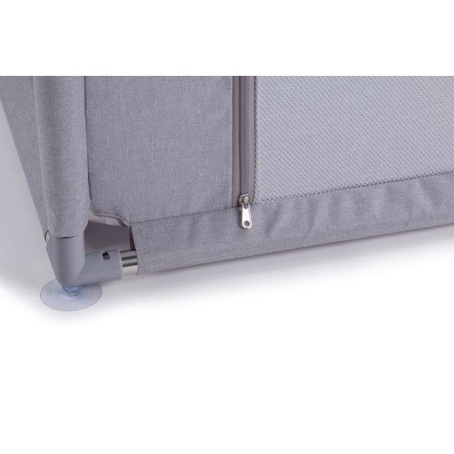 Izmantotais caurspīdīgs un viendabīgs tīkls sānos ļauj bērnam vērot apkārtni, nodrošina pietiekamu ventilāciju un vizuālo kontaktu ar vecākiem.