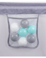 Sētiņa ir aprīkota ar funkcionālu kabatu rotaļlietām, grabulīšiem, dzeramajām pudelēm u.c.