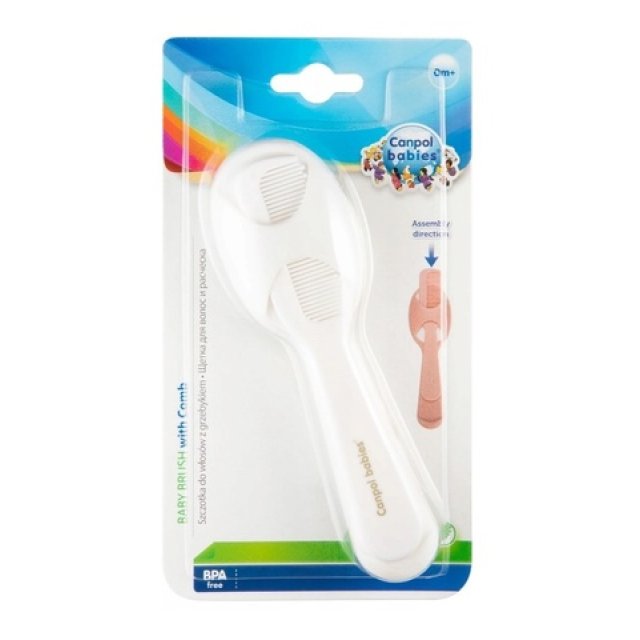 Bērnu birstīte un ķemme ir ideāls komplekts pirmo matiņu ķemmēšanai un mazuļa galvas masāžai. Ķemmes zobi ir noapaļoti, lai nekairinātu jutīgo mazuļa ādu, un sukas sintētiskie sariņi garantē drošu un patīkamu mazuļa matu kopšanu. Produkta ergonomiskā forma nodrošina ērtu lietošanu, un īpaša kabata ķemmei palīdzēs uzturēt piederumus tīrus. Komplekts paredzēts bērniem no dzimšanas.   Canpol babies
