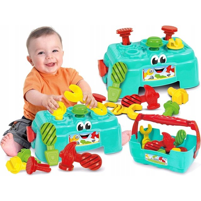 Fantastisks instrumentu komplekts mazajiem. Naglu kalšana un krāsainu skrūvju pievilkšana iepazīstinās jūsu bērnu ar amatniecības pasauli. Galds ir lieliska rotaļlieta mazajiem, kas uzlabo koordināciju, loģisko domāšanu, roku veiklību un māca krāsas. Galdu var pārvērst par instrumentu kasti ar praktisku rokturi, pateicoties kuram bērns to var paņemt līdzi, lai kur viņš dotos. Komplektā: galds/kaste ar rokturi, 4 skrūves, 2 naglas, āmurs, uzgriežņu atslēga, skrūvgriezis. Izmēri 24 x 15 x 15 cm. Ieteicamais vecums 10-36 mēneši.
