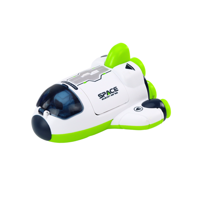 Kosmosa kuģis ir unikāla rotaļlieta, kas iepriecinās ikvienu mazo astronautu. Šis burvīgs kosmosa kuģis ir baltā krāsā ar spilgti zaļiem vai oranžiem akcentiem, kas piešķ tam modernu, futūristisku izskatu. Rūpīgi pārdomāts dizains piesaista uzmanību un rosina iztēli, mudinot bērnus radoši spēlēties un izpētīt telpu. Kosmosa kuģis ir aprīkots ar riteņu piedziņu, kas nozīmē, ka, stumjot, tas dinamiski virzās uz priekšu. Šis risinājums ļauj bērniem aktīvi spēlēties un simulēt īstus kosmosa lidojumus, sagādājot daudz prieka un sajūsmas.Viens no šīs rotaļlietas galvenajiem elementiem ir atveramā kabīne. Bērns var viegli atvērt salonu, lai izņemtu vai ievietotu tajā astronauta figūriņu vai citas mazas rotaļlietas, tādējādi radot reālistiskus kosmosa ceļojumu scenārijus. Mazais kosmosa kuģis ir izgatavots no kvalitātīviem materiāliem, padarot to izturīgu pret bojājumiem un intensīvu spēli.Kosmosa kuģis ir ideāla rotaļlieta maziem kosmosa cienītājiem.Kuģa izmēri: 11cm x 10cm x 7cm. Rotaļlieta ir CE sertificēta un atbilst EN71 standartam. Paredzēta bērniem no 3 gadu vecuma.