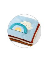 Grāmatā ir daudz paslēptu elementu, kas gaida jūsu mazo: aiz varavīksnes ir mākonis; roka aizver truša aci. Grāmata ir piemērota mazām rociņām, padarot to par ideālu pavadoni jūsu bērnam. Grāmata ir aprīkota ar praktisku pakaramo, kas ļauj to ērti piestiprināt, piemēram, pie gultas, ratiem vai automašīnas sēdekļa. Tehniskie dati: