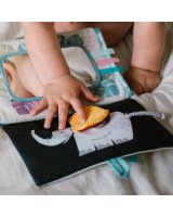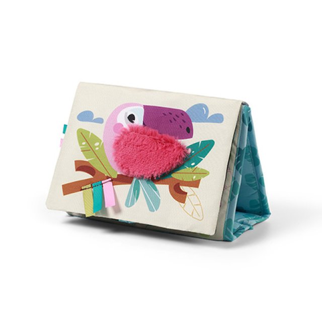 Atklājiet sev maģisko grāmatu "Safari"! Īpašs statīvs ļauj novietot grāmatu uz jebkuras virsmas. Mudina mazuli apgulties uz vēdera un piecelties Grāmatai ir divas puses: melnbalta un krāsaina. Safari tēma ievedīs jūsu mazo savvaļas dzīvnieku un piedzīvojumu pasaulē. Liels spogulis bērnam parāda apkārtni no jaunas puses un mudina bērnu izzināt pasauli. Dažādi sensorālie elementi, piemēram, lentes, zobgrauznis, saburzītas lapas un mirdzošas detaļas, nodrošina jautras spēles uz ilgu laiku. Ideāli piemērots maziem pētniekiem!