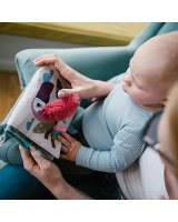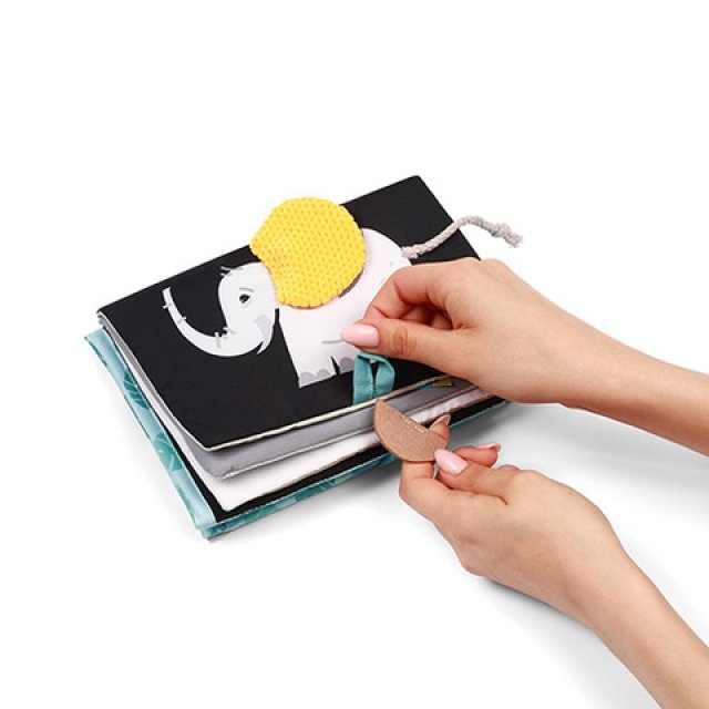Melnbaltā versija ir īpaši noderīga redzes attīstībai pirmajos dzīves mēnešos, savukārt krāsainā versija ir īpaši noderīga vēlākos mēnešos. Grāmatai ir pievienots statīvs, kas ļauj to novietot uz dažādām virsmām. Mudina mazuli gulēt uz vēdera un piecelties. Pateicoties dažādu materiālu un faktūru kombinācijai, bērnam tiek izveidots vesels sajūtu "dārzs", ko izpētīt. Šarbojošās lapas un elementi rada interesantus skaņas efektus, kas attīsta dzirdi. Grāmatā ir daudz paslēptu elementu, kas gaida jūsu mazuli. Spīdīgi un kontrastējoši akcenti padara rotaļlietu par lielisku vizuālās stimulācijas avotu. Maigais mirdzums ar katru kustību izraisa mazuļa zinātkāri un stimulē viņa redzi. Elastīgs zobu graužamais nomierina kairinātās smaganas. Spogulis parādīs jūsu bērnam pasauli no otras puses. Tas padara spēli vēl interesantāku un aizraujošāku. Krāsainās virves un lentes mudina bērnu tās satvert.
