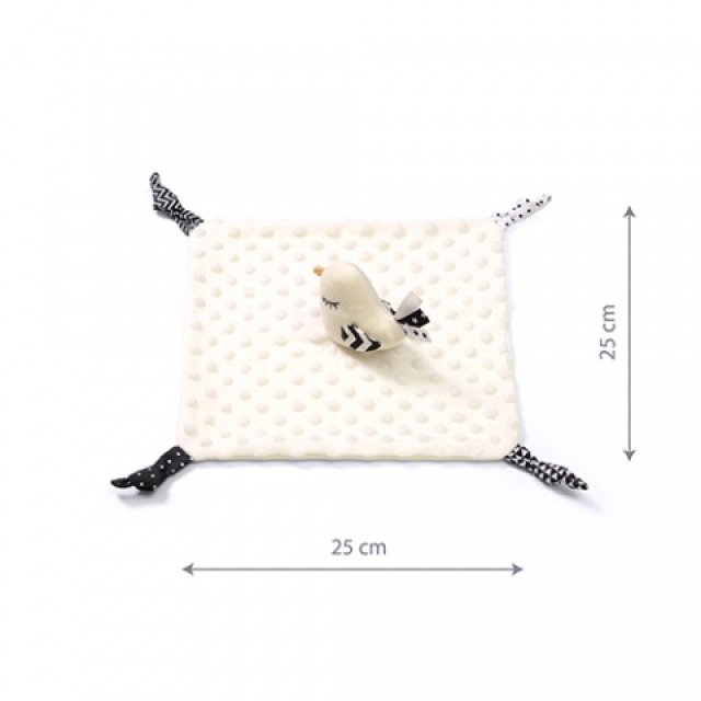 Little Birdie ir funkcionāls produkts divi vienā: mīļlupatiņa un mīksta rotaļlieta. Tā ir arī attīstošā rotaļlieta, kas attīsta mazuļa sajūtas jau no pirmajām dzīves dienām. Mīksts kokvilnas materiāls, ar izvirzītu struktūru punktiņu veidā. Stimulē bērna attīstību un motoriku.