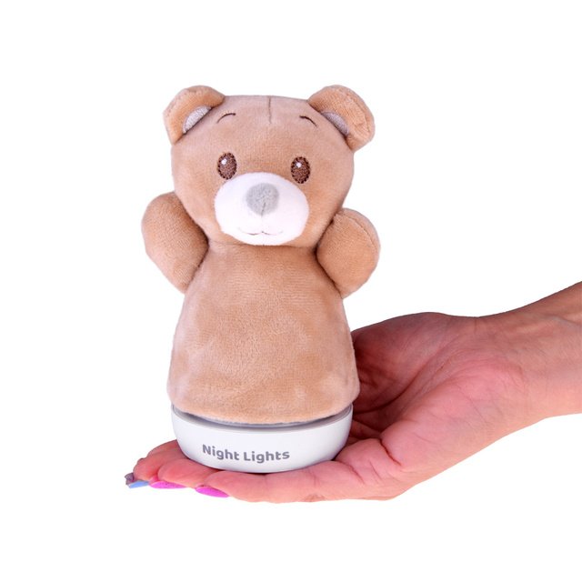 Iepazīstinām ar naktslampiņu-lācīti, kas ir ideāls papildinājums jebkurai bērna guļamistabai! Šī burvīgs lāča formas gaismeklis ne tikai izgaismo telpu, bet arī rada mājīgu, komfortablu atmosfēru, lai palīdzētu jūsu mazulim naktī justies droši. Lampa ir pārklāta ar mīkstu plīša materiālu ar jaukām ķepām un draudzīgu seju, padarot to gan funkcionālu, gan jautru. Tā plakanā pamatne ļauj to novietot jebkur, nodrošinot mīkstu mirdzumu tur, kur tas nepieciešams. Gaismeklis pārslēdzas starp nomierinošām krāsām, piemēram, zilu, zaļu, sarkanu un dzeltenu, pievienojot rotaļīgu noskaņojumu, kas noteikti aizrauj jūsu bērna iztēli. Un tas vēl nav viss!