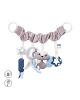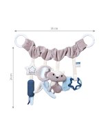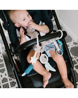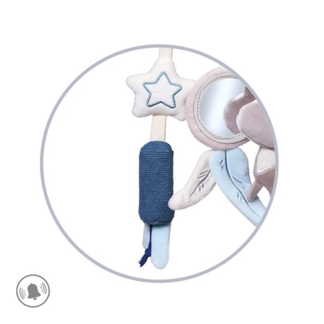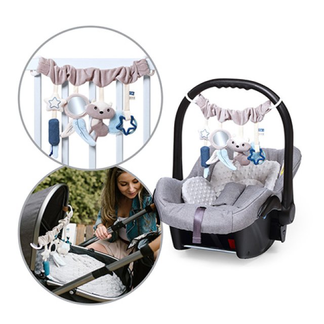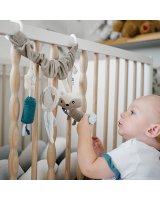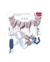 Izglītojošā rotaļlieta RACOON (Jenots) dažādos jūsu bērna pasauli un palīdzēs attīstīt redzes, dzirdes un kustību koordināciju. Pievienojiet to ratiem, šūpulim vai automašīnas sēdeklītim, un rotaļlieta noslogos jūsu bērnu pastaigas vai ceļojuma laikā. Uz piekariņa, kas apvilkts ar taustei patīkamu materiālu, ir mīlīgs jenots ar čaukstošu asti un patīkamiem zvaniņiem. Jūsu mazulis tur atradīs arī drošu spoguli, riņķi un zvaigznīti. Interesanti izvēlētie elementi ir taustei patīkami un piesaista mazuļa uzmanību ar daudzveidīgiem rakstiem. Tie ļauj jūsu mazulim rotaļīgā veidā atklāt pasauli un attīstīt rokas prasmes.   Rotaļlietas īpašības: PRAKTISKS ROKTURIS. Praktiskais un daudzpusīgais rokturis ļauj piekārt rotaļlietu uz ratiem, automašīnas sēdekļa vai gultas. GRABULIS. Maigais grabulītis, ko rada putns, piesaista mazuļa uzmanību un nomierina. Trusī paslēptie čaukstošie elementi ieintriģēs Jūsu bērnu un piesaistīs viņa uzmanību, attīstot viņa izziņas spējas. DROŠS SPOGULIS. Spogulis no elastīga, droša materiāla ļaus bērnam ieraudzīt savu atspulgu. Spoguli ieskauj daudzkrāsaini pavedieni, pievēršot papildu uzmanību. Bērns tos var viegli satvert un izpētīt materiāla faktūru. DAŽĀDAS MATERIĀLA TEKSTŪRAS. Ļaujot bērnam pieskarties dažādām materiāla struktūrām, tiek bagātināta viņa maņu pieredze. IZGLĪTĪBAS IZKLAIDE. Elementu daudzveidība ļauj bērnam radoši spēlēties. Pastāstiet viņam stāstu par putnu un zaķi, tādējādi rosinot bērna iztēli. Tehniskie dati: Materiāls: 100% poliesters. Izmēri: 35 x 20 cm. Bērna vecums: 0 m+