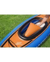 Ērta izmēra korpuss ir izgatavots no izturīga, neplīstoša vinila, un tajā ir regulējams sēdeklis ar atzveltni papildu atbalstam. Šajā kajakā ir arī daudz vietas uzkodām, papildu aprīkojumam vai citām ūdens vajadzībām. Turklāt tas viegli peld pa ūdeni, pateicoties divām spurām apakšā, kuras var noņemt ērtai un kompaktai uzglabāšanai. Atkarībā no ūdens stāvokļa varat pielāgot spuru izmēru atbilstoši savām vajadzībām. Šajā komplektā ietilpst arī Air Hammer™ rokas sūknis ātrai un vienkāršai piepumpēšanai, airis un remonta plāksteris.