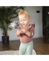 ATBALSTS MAŅU ATTĪSTĪBAI. Lielās ausis un garās rokas palīdz mazulim trenēties veiklībā. Daudzkrāsainas krelles nodrošina papildu maņu stimulāciju.