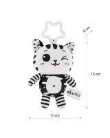 Melnbaltās krāsas stimulē bērna redzi, kurš vēl nespēj atšķirt krāsas.Produkts ir izgatavots no smalka materiāla, tāpēc bērns nevēlēsies no tā šķirties.