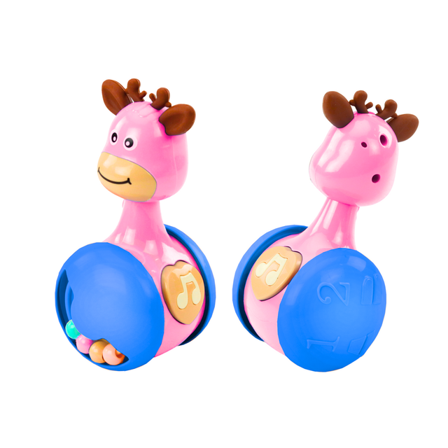 Vanka-Vstanka ir mūžīga rotaļlieta, kas jau vairākās paaudzēs priecē mazos, mudinot viņus aktīvi mijiedarboties. Šajā unikālajā versijā viņa iegūst burvīga rozā brieža formu, kas uzreiz piesaista mazo uzmanību un padara spēli vēl aizraujošāku. Rotaļlieta saglabā klasisko Rolly-Polly mehānismu – neatkarīgi no tā, kā bērns to apgāž, tā vienmēr atgriežas vertikālā stāvoklī. Tas ir ārkārtīgi aizraujoši mazuļiem, kuri var eksperimentēt un novērot, kā rotaļlieta reaģē uz viņu kustībām, vienlaikus apgūstot fizikas un kustību koordinācijas pamatprincipus. Rotaļlietai ir arī krāsainas krelles, kas novietotas sānos, kas kustoties rada maigu grabošu skaņu. Tas ir lielisks veids, kā stimulēt dzirdi un attīstīt rokas prasmes. Papildu atrakcija ir interaktīva poga mūzikas nots formā, kas, nospiežot, rada jautru čīkstēšanu. Šis interaktīvais elements mudina bērnu atklāt un eksperimentēt, padarot jautrību vēl aizraujošāku. Briedītis ir ideāla rotaļlieta mazuļiem, lai atbalstītu viņu maņu un kustību attīstību. Pateicoties rūpīgi atlasītiem drošiem materiāliem un smalkām pasteļkrāsām, tā būs lieliska izvēle kā dāvana mazulim, kurš tikai iepazīst pasauli. Rotaļlietas izmēri: 13 cm x 6 cm x 6 cm