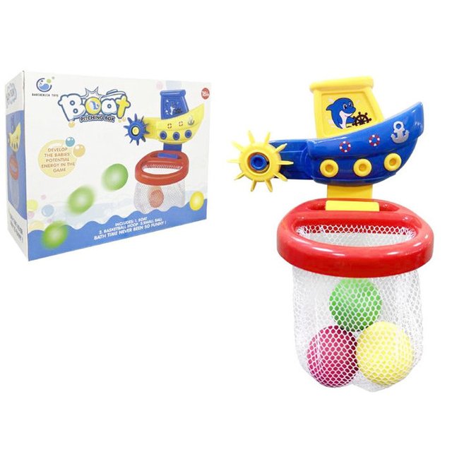 Rotaļlieta-laiva ar grozu mazo bērnu vannošanai. Vienkārši piestipriniet laivu pie vannas istabas sienas un izbaudiet vannošanās prieku. Komplektā ietilpst laiva, grozs un 3 krāsainas bumbiņas, kuras var iemest grozā peldes laikā.