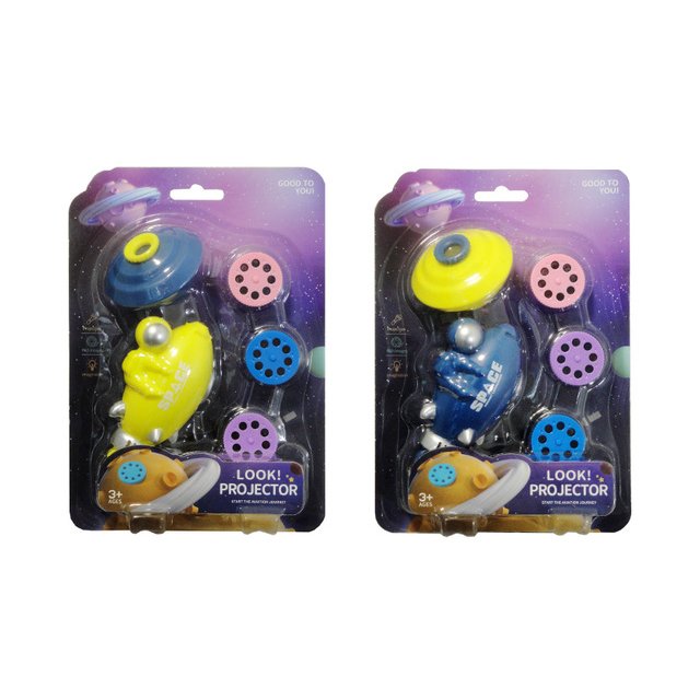 Rotaļlietu projektors attēlu demonstrēšanai. Komplektā ietilpst 3 apaļi diski-ieliktņi. Katrs ieliktnis satur 8 fotogrāfijas (dinozauru, dzīvnieku un planētu tēmas).Rotaļlieta darbojas ar AG13 baterijām. Rotaļlietā ir iekļautas baterijas.