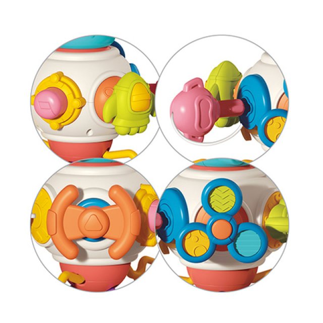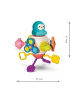 ASTRONAUT ir daudzfunkcionāla sensora rotaļlieta, kas paredzēta bērnu vispusīgai attīstībai. Stimulē bērnu motorisko prasmju attīstību. Uzlabo mazo pirkstiņu lokanību un koordināciju. Rotaļlieta sastāv no dažādiem elementiem, kas izgatavoti no droša silikona un izturīgas plastmasas. Tos var spiest, vilkt un pārvietot. Tas palielina rotaļlietas pievilcību bērnam un iedrošina spēlei. UZSTĀDĪŠANA UZ RATIŅIEM. Rotaļlietu var viegli un vienkārši piestiprināt pie ratiem. Uzstādīšana ietver rāmja aptīšanu ar divām silikona virvēm, kas nodrošina stabilu un drošu spēli. DAUDZFUNKCIONĀLA. Rotaļlieta aktīvi atbalsta bērna sensoro attīstību. Tai ir rotējoši elementi, interaktīvās pogas un silikona auklas ar mīkstu galu. PRAKTISKI UN DROŠI. Rotaļlietas dizains tika īpaši izstrādāts, lai nodrošinātu drošību. Visi izmantotie materiāli ir netoksiski un nesatur BPA.   Tehniskie dati: Bērna vecums: 18 m+. Produkta izmērs: 15x16 cm. Iepakojuma izmērs:15x13x15 cm DROŠĪBAS INFORMĀCIJA: noņemiet no rotaļlietas visus iepakojuma elementus, kas varētu būt bīstami bērnam. Katru reizi, kad dodat bērnam rotaļlietu, pārbaudiet tās kvalitāti. Tikai nebojāta rotaļlieta garantē drošu lietošanu bērnam. Izmetiet rotaļlietu, tiklīdz pamanāt pirmās bojājuma pazīmes. Ieteicams spēlēt pieaugušo uzraudzībā. Rotaļlieta atbilst standartam EN 71 Mēs iesakām paturēt iepakojumu uzziņai. Glabājiet iepakojumu bērniem nepieejamā vietā. Iepakojums un stiprinājuma elementi nav rotaļlieta un var radīt draudus bērna veselībai.