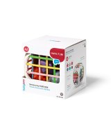Maņu rotaļlieta CUBE BOX ir mūsdienīgs izglītojošs komplekts, kas paredzēts bērnu sensoro stimulāciju un motorikas attīstībai. Komplektā ietilpst kubs un sešas daudzkrāsainas bumbiņas. Katrai bumbiņai ir atšķirīga forma. Tādējādi bērnam tiek nodrošināta daudzveidīga mācību pieredze – no mīkstām un gludām virsmām līdz skaidri strukturētām un nelīdzenām virsmām. Rotaļlietā ir arī inovatīvs kubs, kas izgatavots no krāsainām lokanām virvēm. Tās var pārveidot un pielāgot, kas tālāk attīsta roku prasmes.