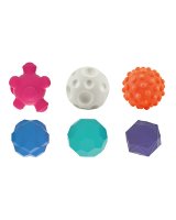 DAUDZVEIDĪBA. Bumbiņas ir pilnībā izgatavotas no drošiem un netoksiskiem materiāliem. Katrai bumbiņai ir atšķirīga forma un krāsa. Tās lieliski stimulē redzi, pieskārienu un kustību koordināciju.