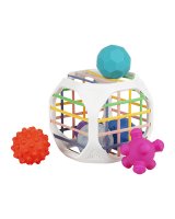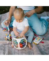 MOTORA PRASMJU ATTĪSTĪBA. Rotaļlietu forma, izmērs un svars ir rūpīgi atlasīti, lai tie lieliski atbilstu bērnu fiziskā darba vajadzībām. Kubs palīdz iemācīties satvert un turēt, un bumbiņas palīdz manipulēt ar pirkstiem.