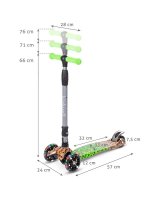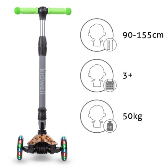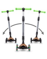 Trīsriteņu līdzsvara skrejritenis ir izstrādāts, domājot par bērniem un pievēršot uzmanību katrai detaļai. Braukšana ir vienmērīga un droša, un iemācīties braukt ir viegli un patīkami. Trīsriteņu skrejritenis VENTO ir ideāli līdzsvarots, stabils un noteikti kļūs par pavadoni Jūsu bērna pastaigās. Riteņi ar LED apgaismojumu un interesantu dizainu iepriecinās ikvienu mazo lietotāju. Izturīgs un viegls dizains, kas sver 2,7 kg. Priekšējo riteņu platā bāze atvieglo līdzsvaru. Klusie un izturīgie riteņi nodrošina ļoti labu saķeri ar zemi. Riteņos iebūvētās gaismas diodes deg braukšanas laikā. Priekšējā piekare ar dinamisku stūrējamo stieni. Ātra locīšanas sistēma. Alumīnija stūre ar 3 pozīciju augstuma regulēšanu. Ierobežotais stūres leņķis samazina nekontrolētas virziena izmaiņas. Ergonomiski rokturi uz stūres. Neslīdoša platforma. Bremze uz aizmugurējās ass. Izturīgi ABEC-7 gultņi. Krāsains iepakojums, skrejritenis ir lieliski piemērots dāvanai. Pēc izpakošanas skrejritenis ir gatavs lietošanai, nav nepieciešama montāža. Unikāls dizains. Maksimālā skrejriteņa slodze ir 50 kg. Paredzēts bērniem no 90 līdz 155 cm gariem. Stūres regulēšana 71 - 85 cm Vecuma diapazons 3+ Skrejritenis ir projektēts, ražots un sertificēts atbilstoši Eiropas Savienības prasībām (EN 71 drošības standarts).    SPECIFIKĀCIJA Materiāli: Alumīnija stūre, plastmasas platforma, poliuretāna riteņi ar LED. Produkta svars: 2,7 kg Riteņi: priekšējie diam. 12 cm, platums 2 cm; mugura vidēja 7,5 cm, platums 2 cm Maksimālais bērna svars: 50 kg Bērna augums: 90 - 155 cm Bērna vecums: 3+ Iepakojums: Krāsains kartons 60 x 28 x 15 cm.