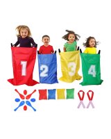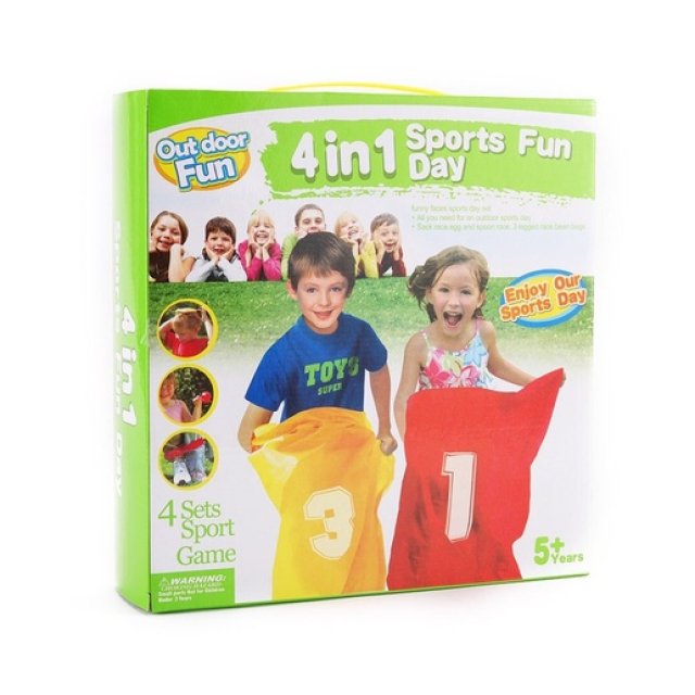 Šis "četri vienā" sporta komplekts ietver līdz pat četrām dažādām spēlēm, kas palīdz attīstīt motoriskās prasmes. Pieejamās spēles ietver lēkšanu ar maisu, maisu mešanu tālumā, plastmasas olas nešanu uz karotes un skriešanu pa pāriem uz trim kājām. Komplekts veicina roku-acu koordinācijas un uzmanības attīstību māca veselīgu konkurenci. Tehniskie parametri: Materiāls: poliesters, plastmasa Vecums: no 3 gadiem Olu izmēri: 4 cm x 5,5 cm Karotes garums: 16,5 cm Somas izmēri: 9 cm x 8 cm Lentes garums: 46 cm Somas izmēri: 68 cm x 50 cm Iepakojuma izmēri: 26 cm x 27 cm x 7,5 cm Komplekta saturs: Olas x4, Karotes x4, Maisiņi ar pildījumu x4, Josta x2, Somas x4. Sporta komplekts ir izgatavots no izturīgiem materiāliem. Ir CE sertifikāts. Produkts ir iepakots kartona kastē.