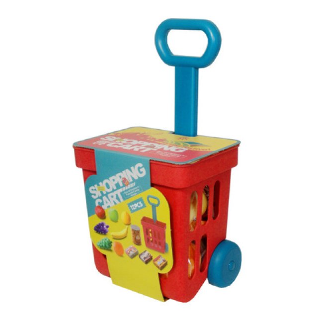 Iepirkumu ratiņi ir lieliska izvēle bērniem, kuriem patīk atdarināt pieaugušos ikdienas iepirkumos. Šīs rotaļlietas attīsta iztēli, smalko motoriku un sociālās prasmes, izmantojot lomu spēles. Ratiņos ir pārtikas produktu imitācijas, piemēram, vīnogas, banāni, tomāti un apelsīni, kā arī kafijas bundža un šokolādes tāfelīte. Komplektā ir 12 daļas. Ratiņu rokturis ir noņemams.