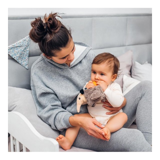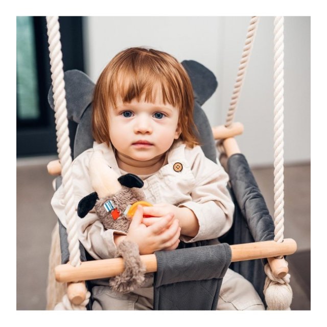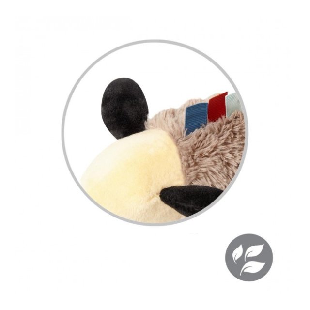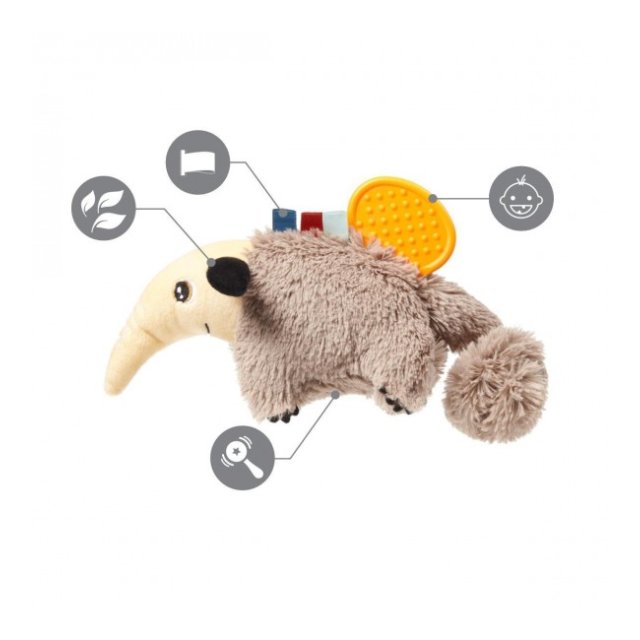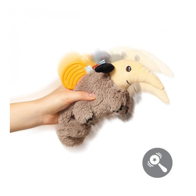 Grabošajai skaņai ir nomierinoša iedarbība uz bērnu. Rotaļlietas komplektācijā esošais mīkstais silikona zobgrauznis nomierina kairinātās smaganas zobu nākšanas laikā. Rotaļlietā paslēptie čaukstošie elementi ieinteresēs bērnu un piesaistīs viņa uzmanību.