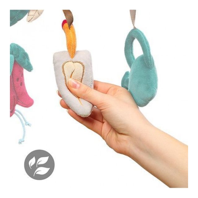 Pateicoties attīstošajai rotaļlietai "DĀRZNIECE" Jūsu bērns atklās daudzveidīgu krāsu, skaņu un formu pasauli. Jūs varat viegli piestiprināt rotaļlietu pie automašīnas sēdekļa vai ratiem, lai padarītu katru ceļojumu patīkamu mazajam.