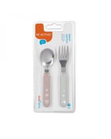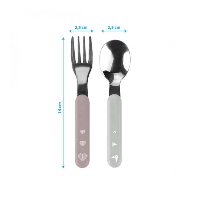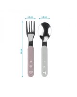 PRAKTISKI UN ĒRTI: - ideāli, lai mācītos ēst patstāvīgi - formas, kas piemērotas mazām rokām - izgatavoti no augstas kvalitātes nerūsējošā tērauda - izgatavoti no drošiem materiāliem, kas paredzēti saskarei ar pārtiku - nesatur bisfenolu A