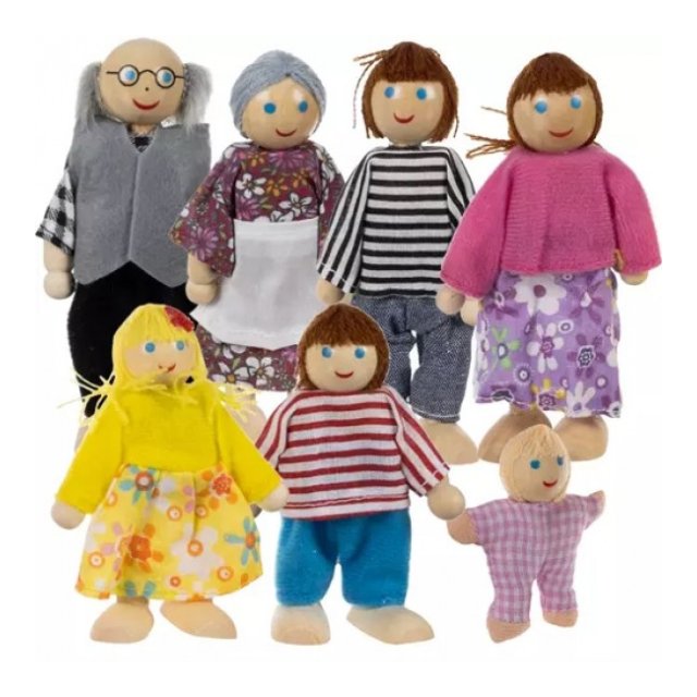 Ģimene sastāv no 7 cilvēkiem. Tie ir vecvecāki, vecāki un viņu trīs bērni. Visa ģimene ar smalkiem vaibstiem un rūpīgi izvēlētiem apģērbiem atbilstoši personāža vecumam. Lelles pēc izmēra ir ideāli piemērotas koka leļļu mēbelēm. 3 paaudžu kuplā ģimene lieliski iederēsies arī leļļu namiņos.