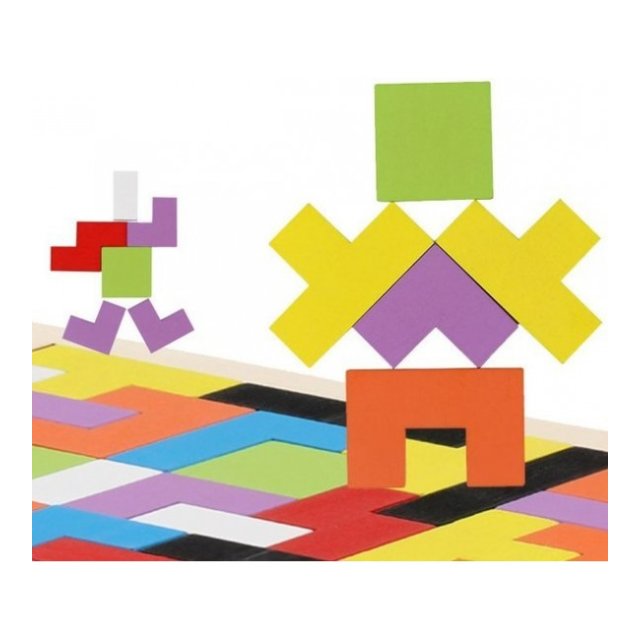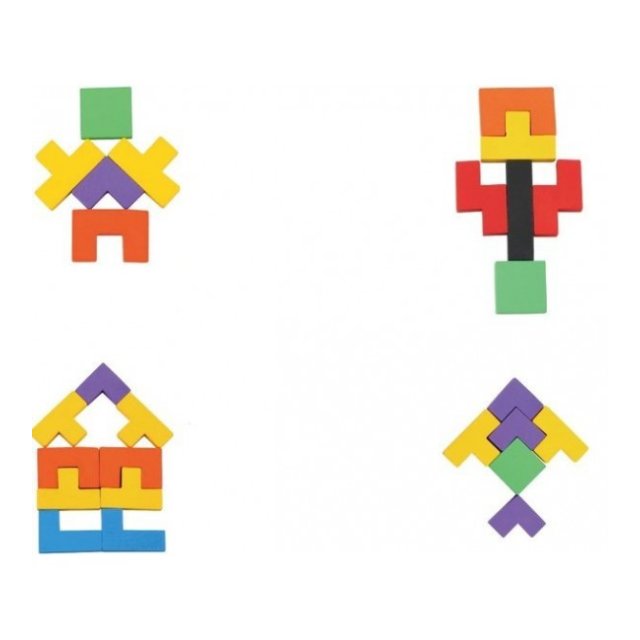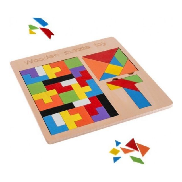 3in1 - spēle sastāv no 3 dažāda veida loģiskai domāšanai paredzētajām mīklām: Tetris, Tangram un T. Papildus pamata mīklām bērns var sakārtot 37 krāsainus blokus pēc jebkura parauga. Šī rotaļlieta ir lieliski piemērota iztēles attīstīšanai un radošuma stimulēšanai. Var izveidot gandrīz jebkuru modeli -tikai brīdi jāapdomā un jāieplāno elementu izkārtojums. Puzļu spēle ir lielisks veids, kā attīstīt roku prasmes, veiklību, acu un roku koordināciju un praktizēt savas spējas domāt loģiski. Tas arī attīsta pacietību un koncentrēšanos. SPECIFIKĀCIJA: materiāls: koks; elementu skaits: 38; izmēri (garums / platums / augstums): 22,5 / 22,5 / 0,8 svars: 0,2 kg;
