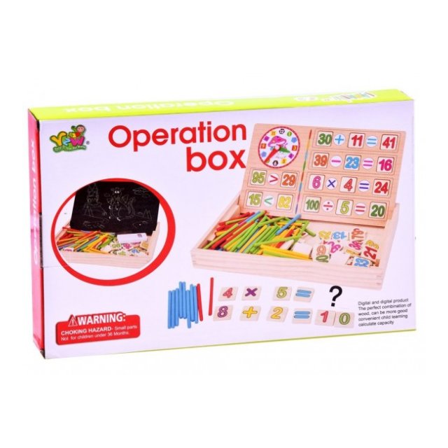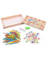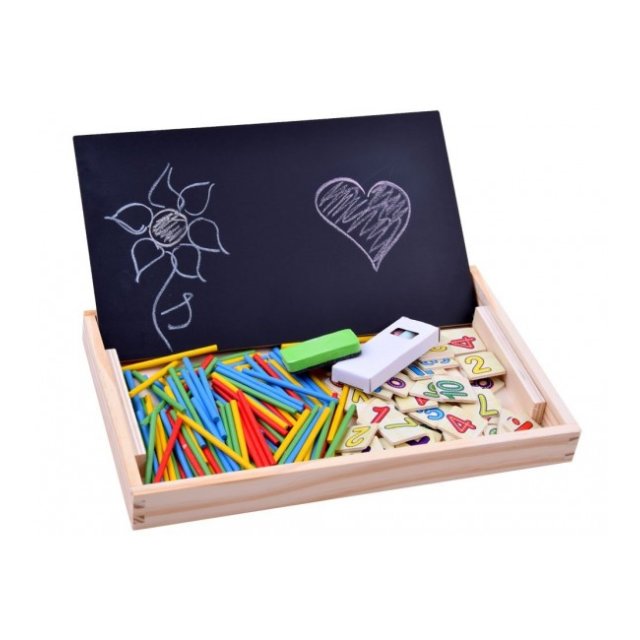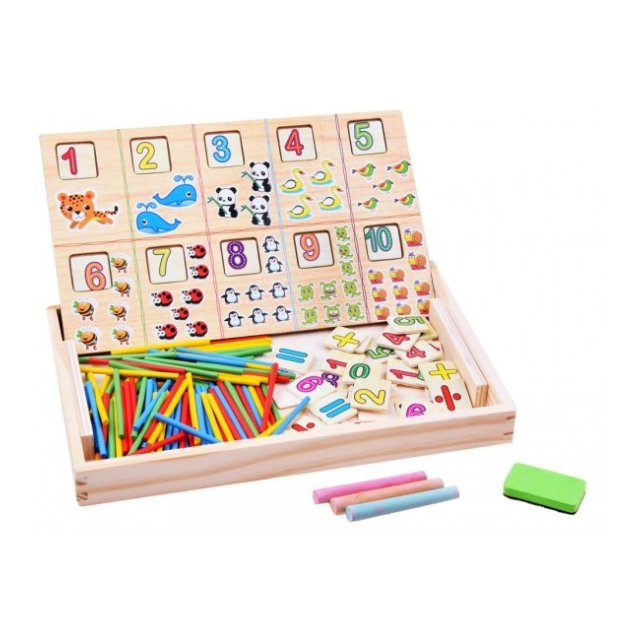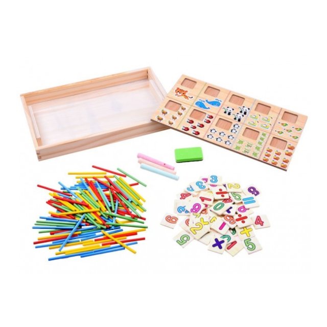 Mācību komplekts noderēs jau pirmaii iepazīšanai ar matemātiku. Komplekts ir pilnībā izgatavots no koka, slēgtas kastes formā.