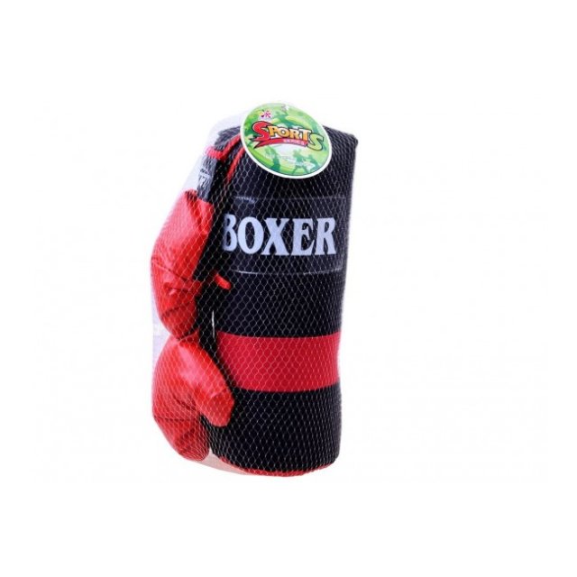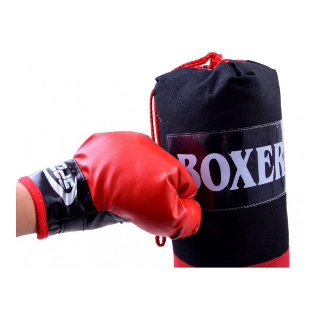 Boksa komplekts ir lieliska ideja bērniem, kuriem patīk būt aktīviem vai tiem, kuru enerģijai ir nepieciešams izvads. Bokss attīsta koordināciju, ātrumu, veiklību un izvairīšanos. Cimdi izgatavoti no mākslīgās ādas, aiztaisāmi ar Velcro. Komplektā ir 2 cimdi un soma. Izmēri: cimds 23 x 14 x 5 cm, maiss 37 x 14 x 14 cm.