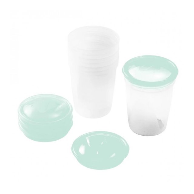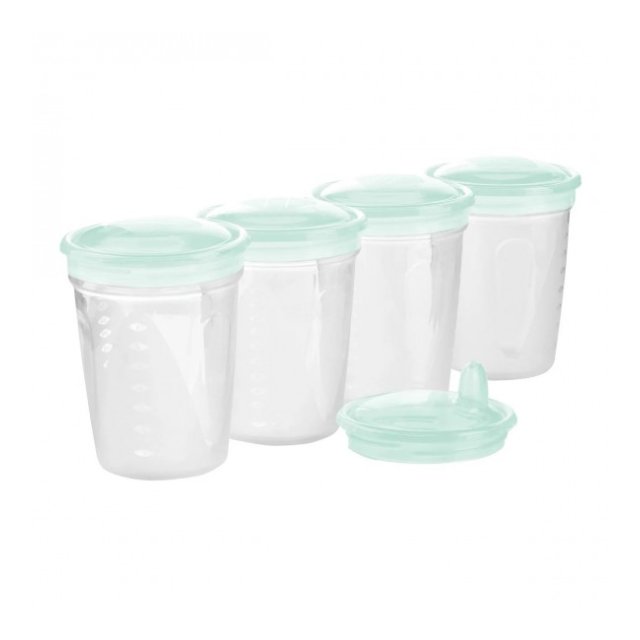 Mātes piena, sulu un citu pārtikas produktu konteineri ir paredzēti produktu atkārtotai uzglabāšanai un sasaldēšanai. Papildu vāks ar iemutni ļauj pabarot mazuli tieši no trauka.