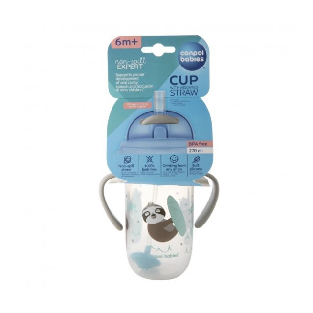 Jauna krūzīte ar non-spill silikona salmiņu un svērteni atbalsta pareizu mutes dobuma, runas un sakodiena attīstību 99% bērniem*.