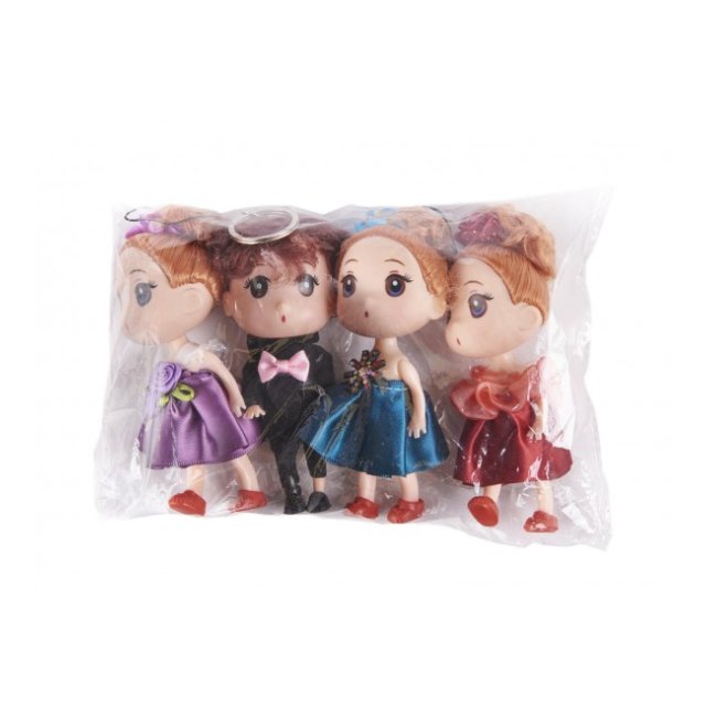 Jaukas lelles būs ideāls papildinājums jebkurai leļļu mājai. Lelles ir ģērbtas elegantos tērpos. Zēns valkā melnu fraku ar rozā tauriņu un melnas čības. Meitenēm ir skaistas violetas, bordo un tumši zilas krāsas kleitas. Viņu galvās ir ziedu dekori, kas atbilst apģērbam. Lellēm ir kustīgas rokas un kājas, tāpēc tās var sēdīnāt vai nolikt. Lelles ir lieliskas arī kā atslēgu piekariņi. Galvas aizmugurē ir piestiprināts metāla pakaramais, ko var piestiprināt pie atslēgām, mugursomas, somiņas utt.
