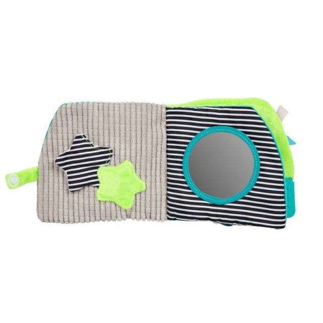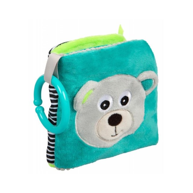 Mācību grāmatiņai BEARS ir daudz pārsteigumu, kas aizrauj mazuli. Tā ir izgatavota taustei patīkamajiem materiāliem ar dažādām faktūrām. Grāmatiņā ir zobu grau žamais, pīkstulis, grabulis un čaukstošie elementi, kā arī drošais spogulis, kas modinās bērna zinātkāri. Grāmata lieliski stimulē bērna redzes-dzirdes un motora koordinācijas attīstību. Praktisks āķis ļauj piestiprināt rotaļlietu pie ratiņiem vai gultiņas. Paredzēta bērniem no 0m +.