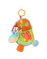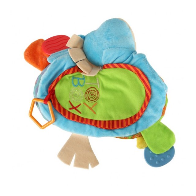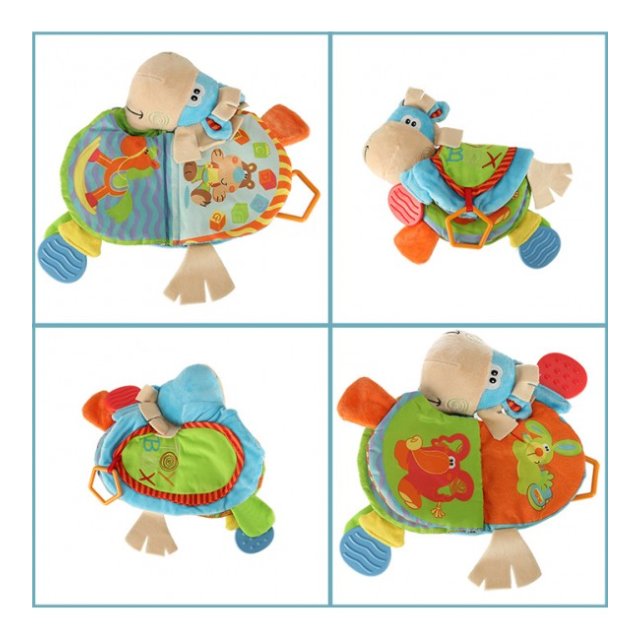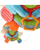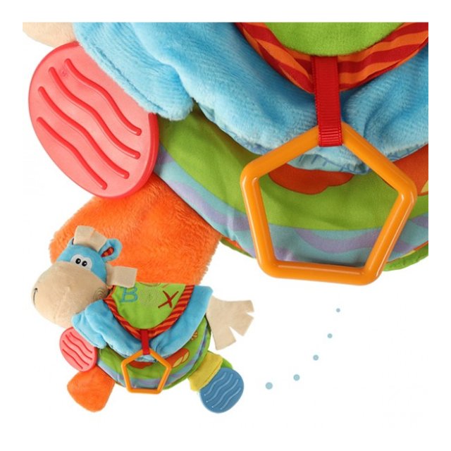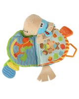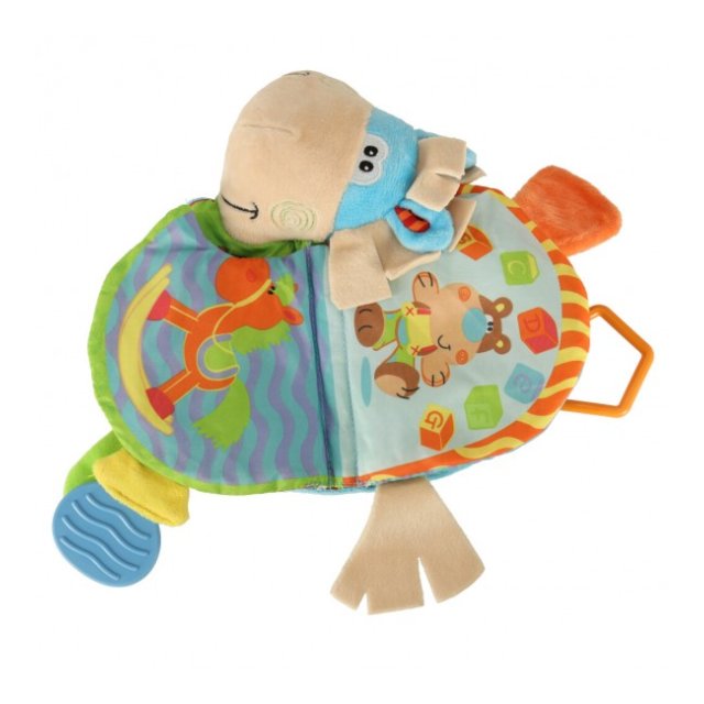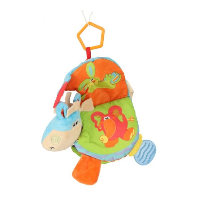 Grāmatiņa izgatavota no taustei patīkamajiem materiāliem ar dažādām faktūrām. Grāmata lieliski stimulē bērna redzes-dzirdes un motora koordinācijas attīstību. Praktisks āķis ļauj piestiprināt rotaļlietu pie ratiņiem vai gultiņas. Paredzēta bērniem no 0m +.