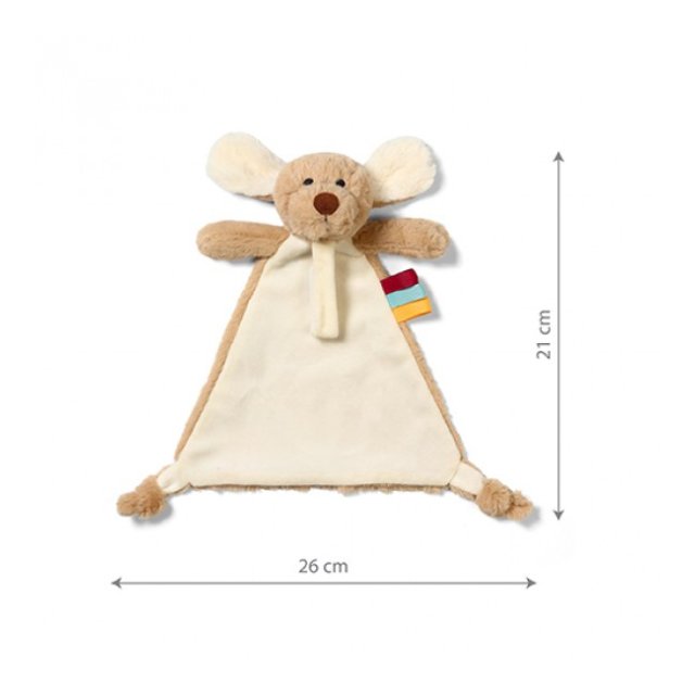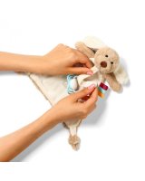 Šī ir rotaļlieta, kas nomierinās un iemidzinās jūsu mazuli. Tā ir mīksta un taustei patīkama. Tas ir vairāk nekā tikai jauks auduma gabals. Rotaļlietai ir arī praktisks mānekļa pakaramais, un krāsainas etiķetes mudina rotaļāties un izpētīt. Rotaļlietas īpašības: