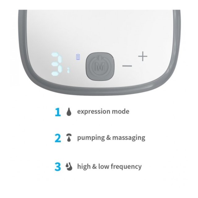2 IN 1 REŽĪMS. 8 masāžas kustību cikls, kam seko 1 sūkšanas kustība. Šis režīms ir ieteicams, lai mazinātu sāpes pilnu krūšu gadījumā un mudinātu Jūs atslaukt vairāk piena īsākā laikā.