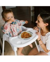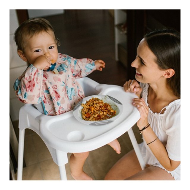 Priekšauts ir ideāli piemērots ikdienas ēdienreizēm, ēšanas apmācībai, izklaidei un mākslai. Pateicoties regulējamai Velcro aizdarei, nekas nesaspiedīs jūsu mazuļa kaklu. Drupaču kabata nodrošina, ka pārtikas atliekas nenonāk uz grīdas vai drēbēm. Pateicoties elastīgajām lentēm uz piedurknēm, priekšauts labāk pasargās jūsu bērna drēbes no netīrības. Tehniskie dati:
