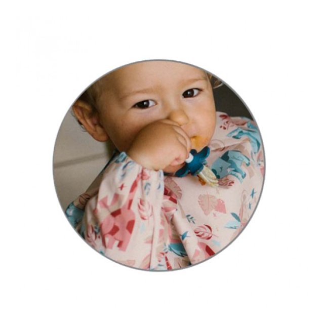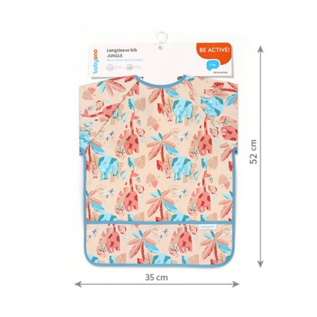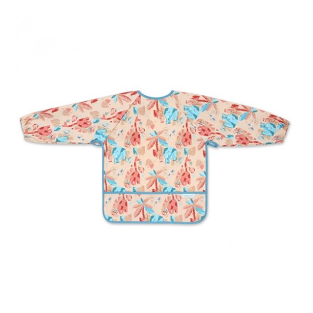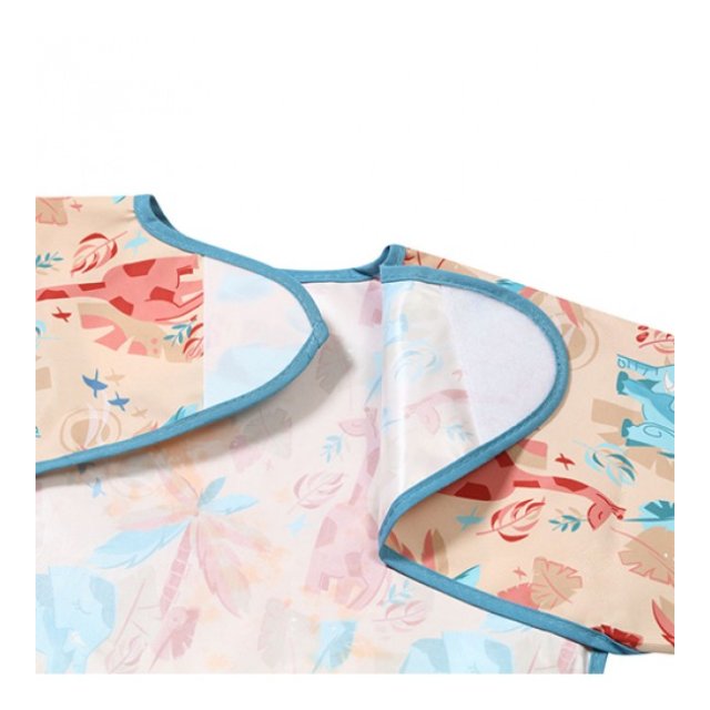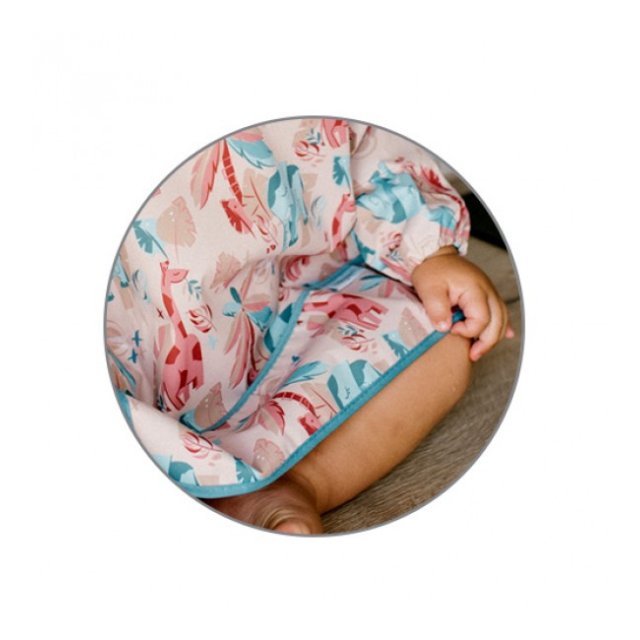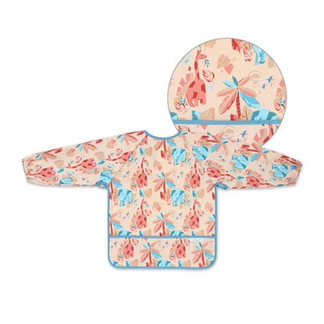 Priekšauts ar garām piedurknēm ir praktisks risinājums, kas pasargās Jūsu mazuļa drēbītes. Ēšanas laikā tas pasargās ne tikai apģērba priekšējo daļu, bet arī piedurknes, kuras “mīl” sasmērēties. Pateicoties elastīgajām gumijām, tas labi pieguļ pat mazu bērnu rociņām. Piedurkņu priekšautiņam ir arī praktiska drumstalu kabata, lai noķertu ēdiena pārpalikumus. Priekšauts ar piedurknēm ir ūdensizturīgs un viegli tīrāms, tāpēc noderēs mācoties ēst patstāvīgi. Jūs varat pielāgot priekšautiņa aizdari un viegli pielāgot to mazuļa kakla apkārtmēram.