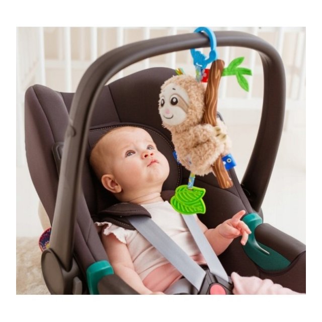 Šis jautrais dzīvnieks padarīs jūsu mazuļa dienu jautrāku gan mājās, gan ārpus mājas. Tam ir mīksta kažokāda un vairākas daudzkrāsainas etiķetes. Rotaļlieta ir izgatavota no materiāliem ar dažādām faktūrām, kas stimulē mazuļa taustes un redzes sajūtu. Sliņķī paslēpts zvaniņš ar patīkamu skaņu uzmundrinās katru reizi, kad bērns pakrata rotaļlietu, un zobu nākšanas laikā noteikti noderēs dzīvniekam piestiprināta mīksta lapiņa. Piekaramā rotaļlieta ir aprīkota ar praktisku rokturi, kas ļauj to nostiprināt izvēlētajā vietā.