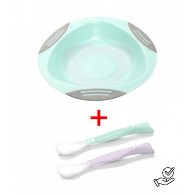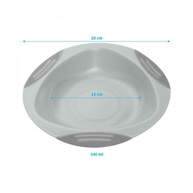 Šķivis ar piesūcekni ir ārkārtīgi noderīgs produkts, it īpaši, mācoties ēst patstāvīgi. Gumijas piesūceknis neļauj plāksnei slīdēt pa galdu, pasargājot pārtiku no noplūdēm. Šis produkts ir izgatavots no drošiem materiāliem, kas paredzēti saskarei ar pārtiku, un nesatur BPA.